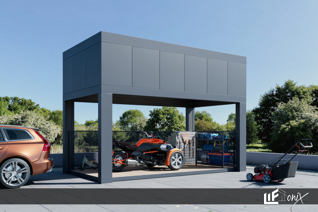 Inovativni nadstrešek s pametno shrambo, kot pametna rešitev za urejen dom in breskrbno zunanjo estetiko.